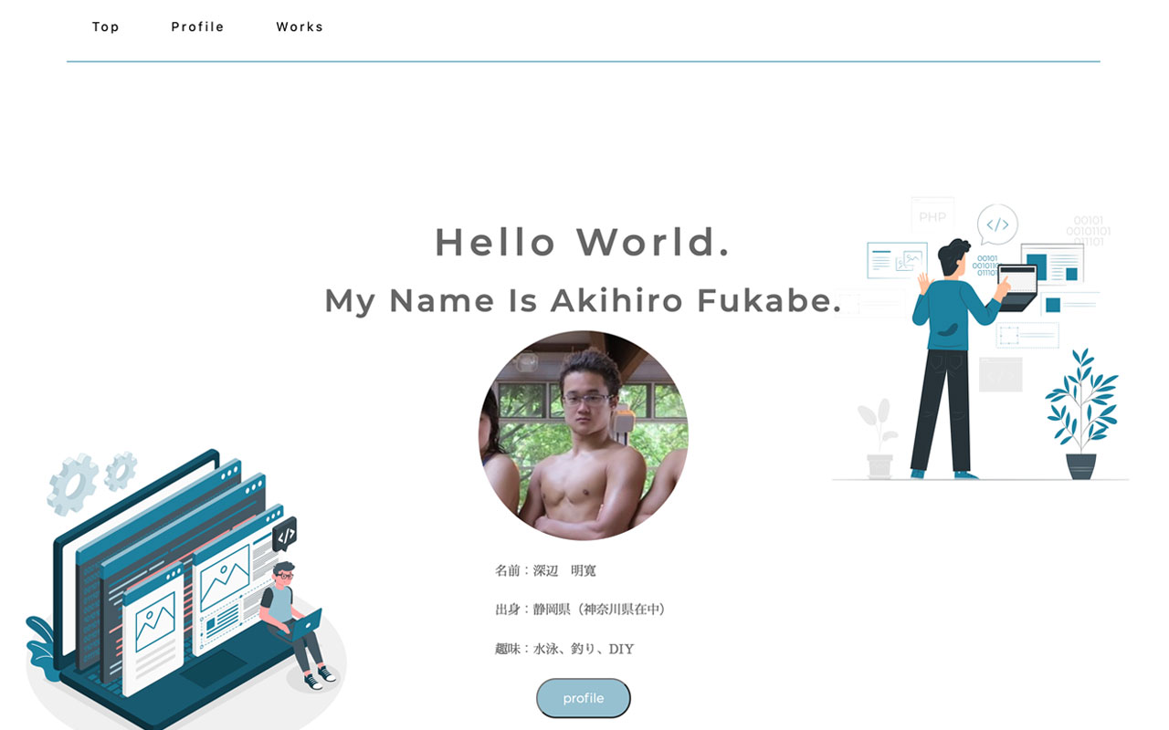 こちらは本ポートフォリオのページである。以前作成したポートフォリオをPHPをベースに再作成した。今後拡張する際にページの作成が簡単になるように共通部分をテンプレート化した。また、HTMLとCSSはBEM記法で作成した。